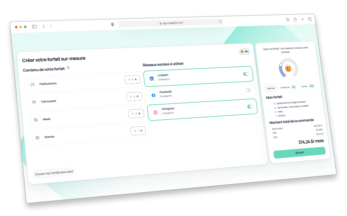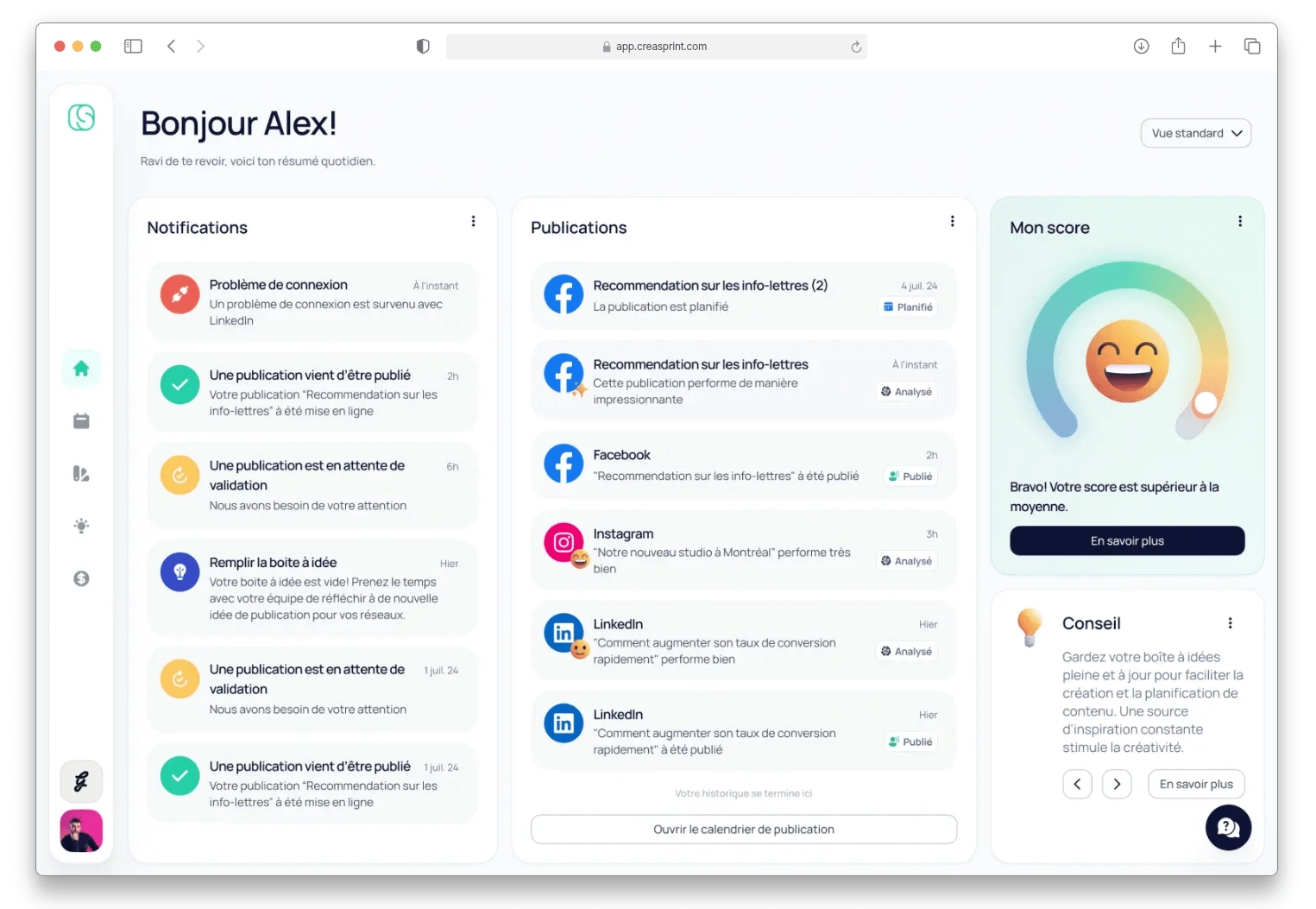 En bref, Creasprint est devenu un écosystème intelligent dédié à la gestion et à l’optimisation des réseaux sociaux (Facebook, Instagram, LinkedIn).